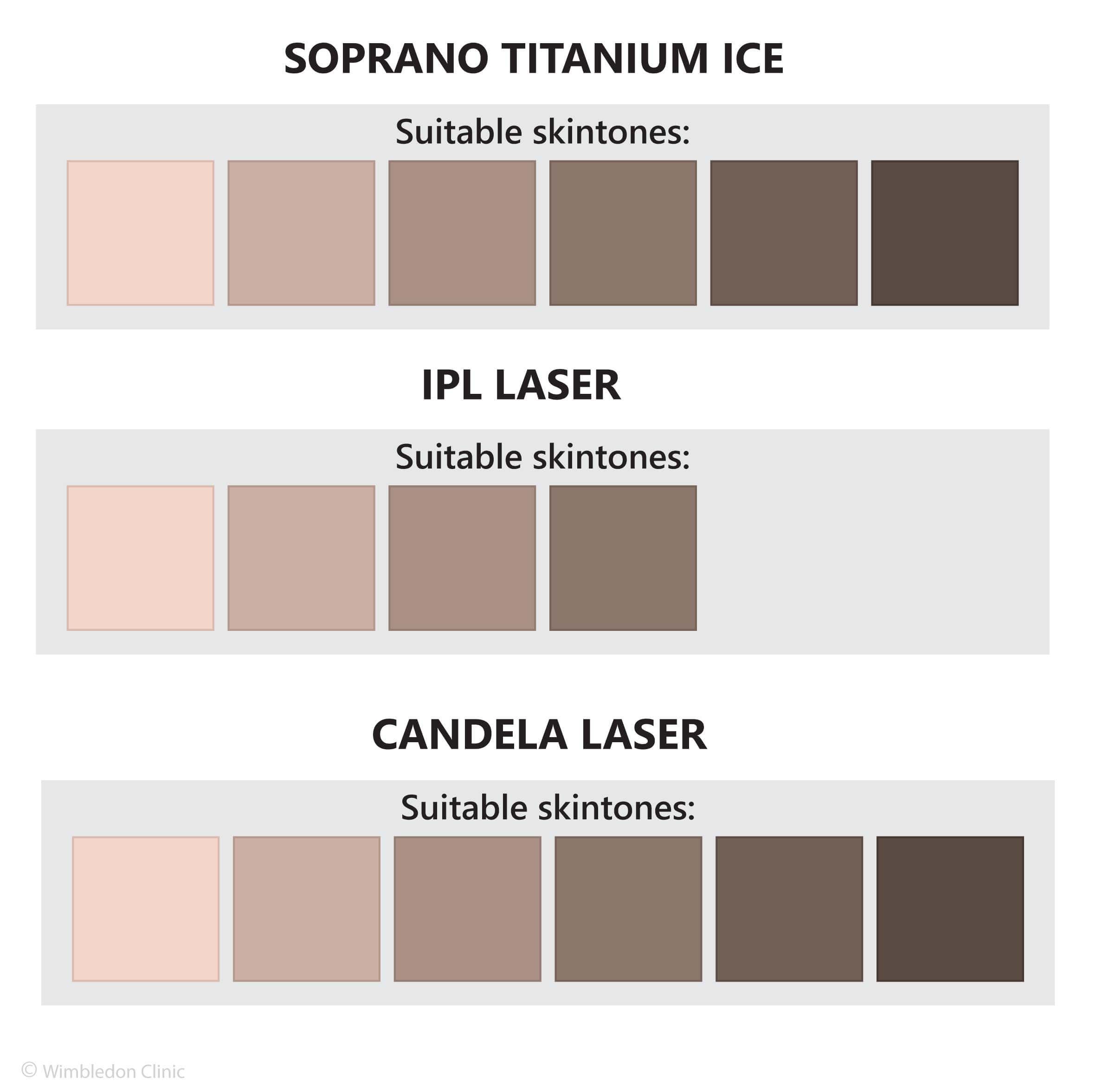 Skin tone white black tan IPL Candela soprano
